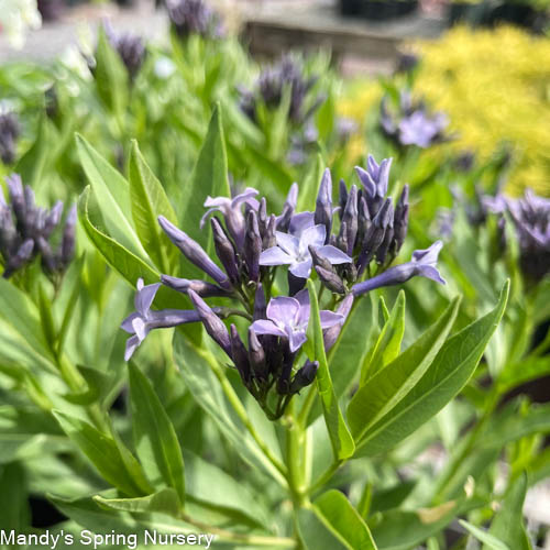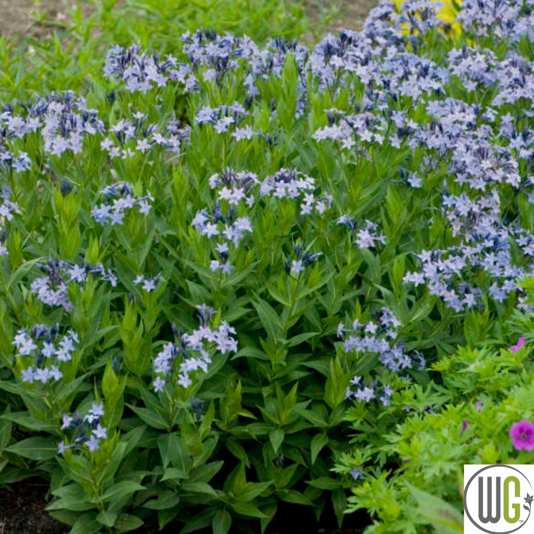 The bright green, compact, slowly spreading foliage forms the perfect background for the delightful blossoms and then turns a rich shade of yellow in fall. Amsonia adds a billowy, finely textured element to the landscape. It grows into a dense mass, much like a small shrub.