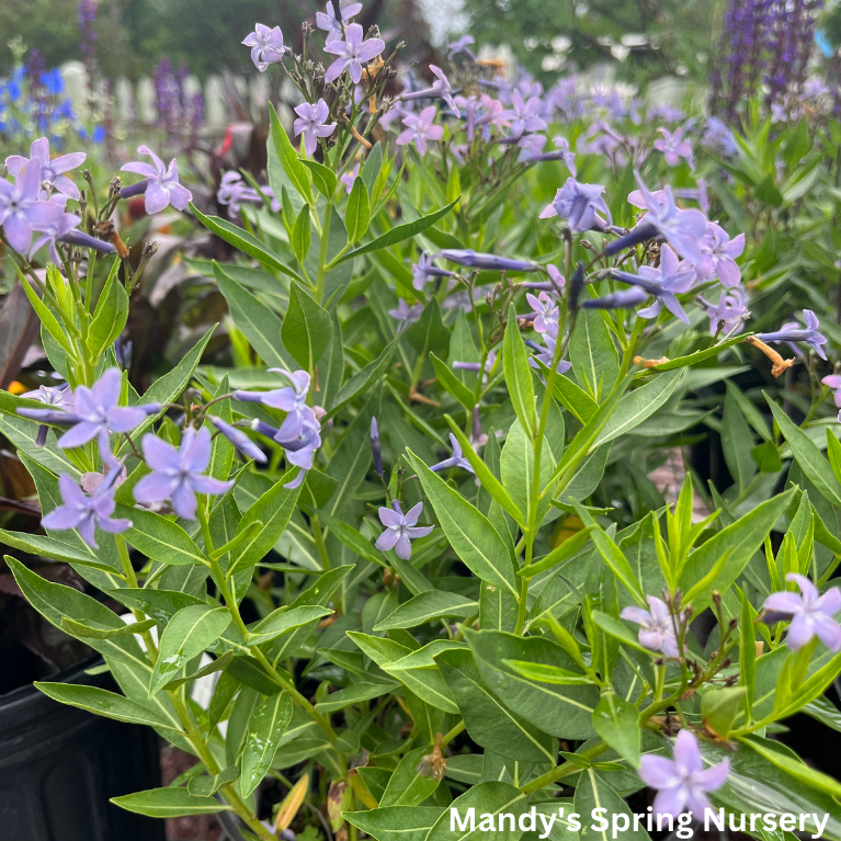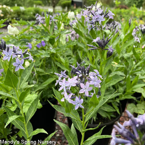 This selection of Amsonia from White Flower Farm bears gorgeous plump navy blue buds in late spring, opening to vivid periwinkle blue, star-shaped flowers. They are larger than the species and are borne in clusters at the ends of each stem.