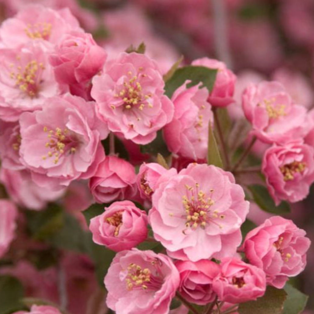 Rosy, double-blooming flowers emerge in the spring, followed by bright yellowish-red fruit and glossy leaves. A favorite for attracting birds to the yard, as they feast on the profusion of fruit. Height: 15-20' Spread: 15-20' Sunlight: Full Sun Zone: 4-8.