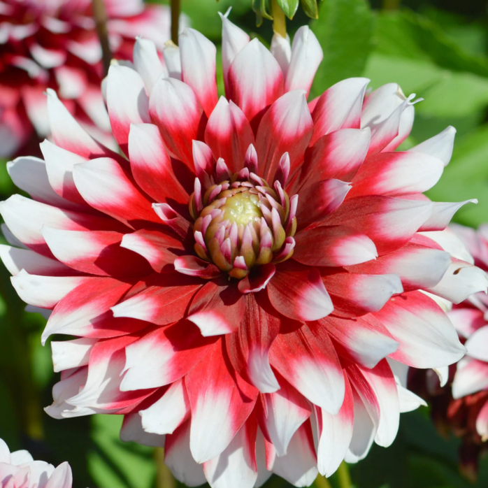 Award-winning Dahlia Duet has been a firm favorite since 1955. A truly timeless Dahlia that is adored in the summer garden every year. With strawberry-red flowers that fade into white at the tips, Duet is supported by strong stems that keep the flowers standing up straight.