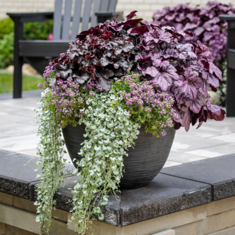 Read moreWhen its vibrant grape purple new foliage emerges with black veins in spring, you’ll easily be able to pick ‘Dressed Up’ out from the crowd. The broad, thick and durable, somewhat fuzzy leaves form a dense, upright mound as opposed to the wide spreading form of ‘Blackberry Ice’. As the temperatures rise, the leaves develop a bright silver coating and then turn back to very deep purple in late fall. Creamy white flowers are produced on dark purple stems in midsummer.