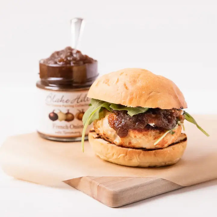 Inspired by the rich, decadent flavors of a classic French Onion Soup, we cook onions overnight with brown sugar, apple cider vinegar, rosemary, and toasted caraway seeds for a uniquely “nutty” taste, and then finish the next day with a generous splash of bourbon.