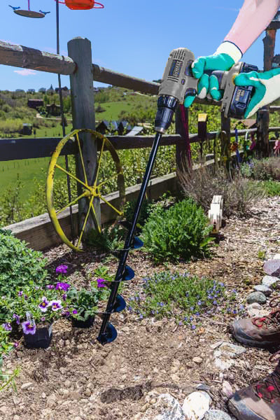 POWERFUL AUGER DRILL BIT: Our solid steel auger drill bit has a 10-gauge spiral flighting that chews through tough dirt and grass when planting bulbs, vegetables, bedding plants, and 3″-4 potted plants. Its practical design has been shown to speed up your planting/digging time by 500 percent.