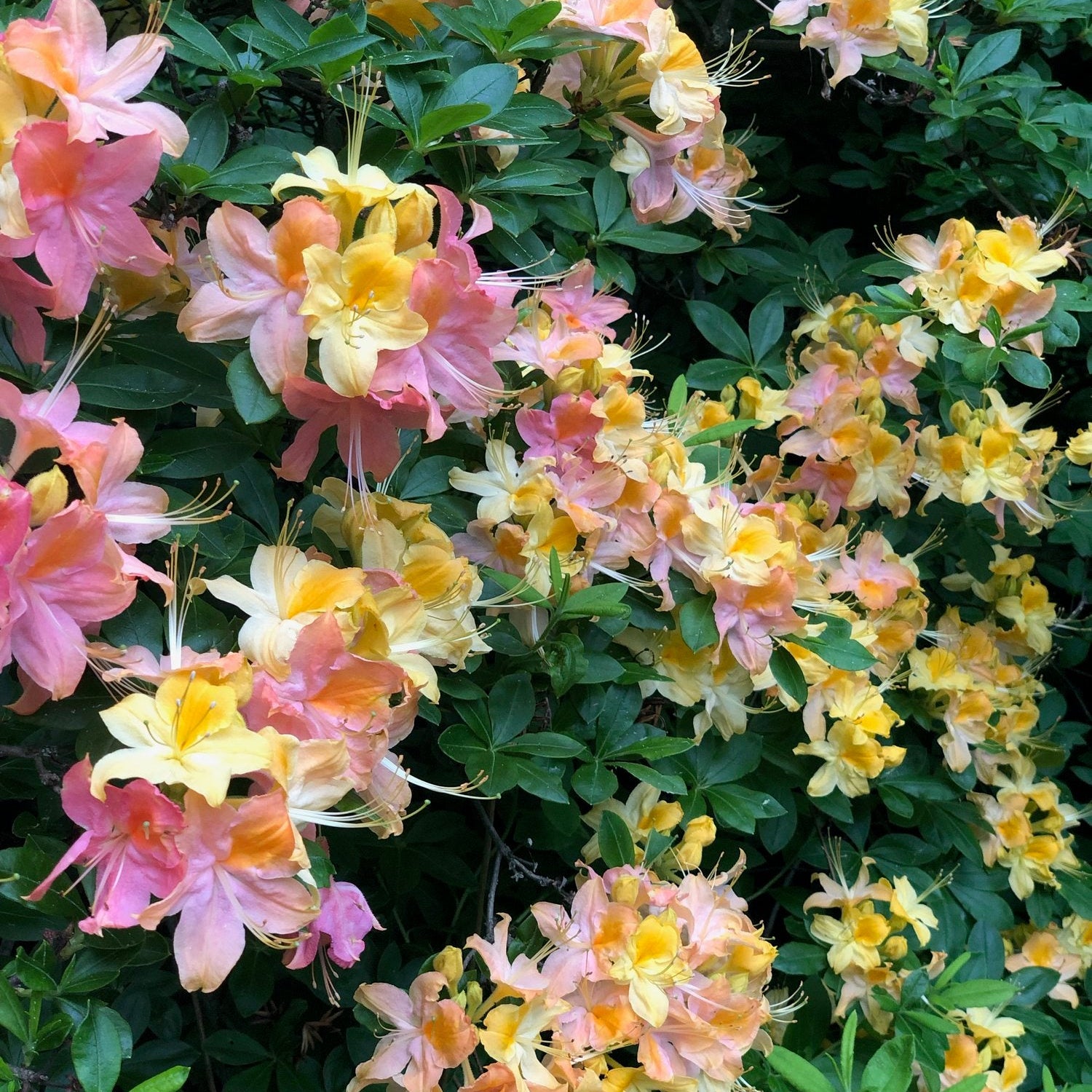 Read morePerfect for use along wood lines, this upright, deciduous selection's numerous flower buds open in early June to reveal yellow flowers that change to orange then pink as they age creating a unique rainbow of color in the landscape. Unique late spring color show attracts loads of native pollinators. Perfect for grouping at the wooded edge of a landscape of for use as a colorful single specimen. Mildew resistant foliage. Easy to grow.