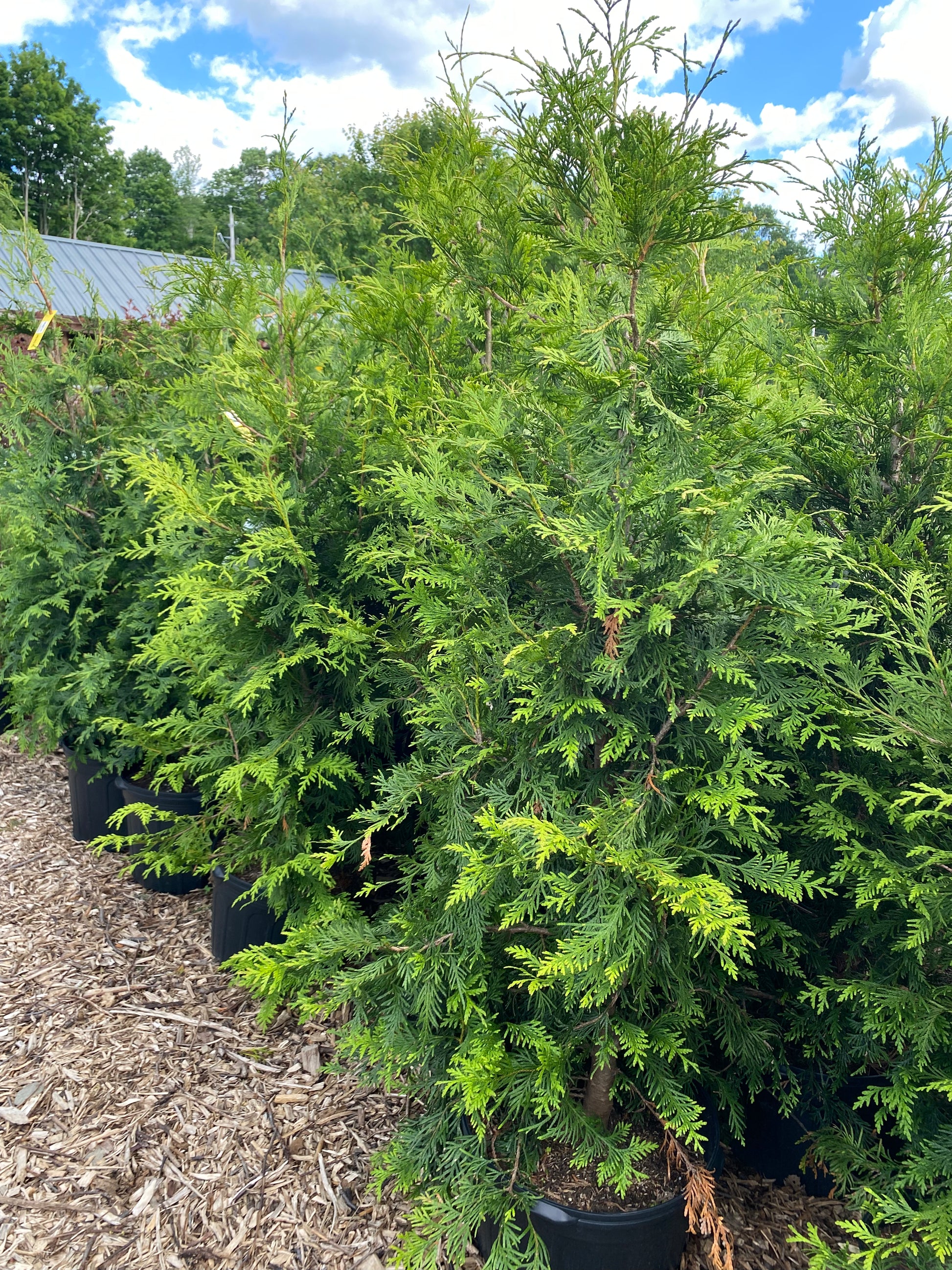 ‘Green Giant’ Western Red Cedar is a fast-growing arborvitae hybrid cultivar (T. plicata x T. standishii) that is often promoted as a disease-free substitute for Leland cypress, particularly in the southeastern U. S.