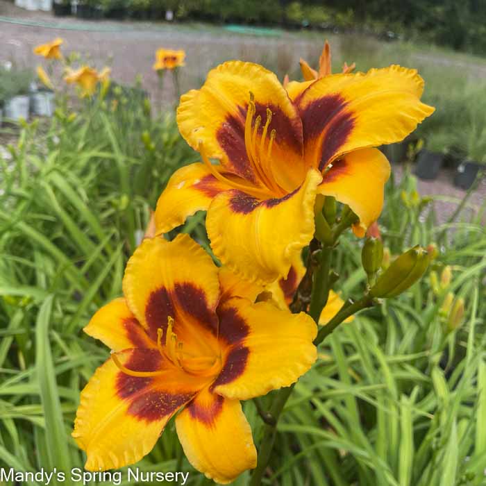 Read moreThis new and exciting variety stands out from the rest of the daylilies with its uniquely shaped petals. Huge, 6.5in triangular-shaped flowers are light golden yellow with a pronounced raspberry red eye. Its bottom sepals are smooth, often twisting or curling into a “swirling” motion. This is the perfect companion to ‘Primal Scream’, matching its spider-like look. Daylilies are a perfect landscape plant and possibly the most care-free and easiest perennials to grow.