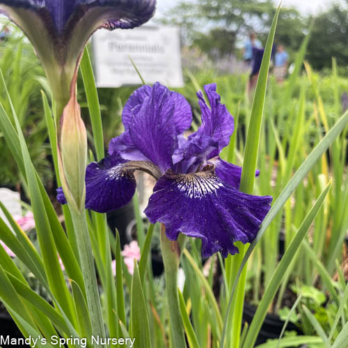 Siberian Iris are a welcome sight in early summer, and ‘Over in Gloryland’ is an especially showy selection. 5" wide, deep blue-purple standards and falls have a light yellow and cream blaze with blue-purple veining.