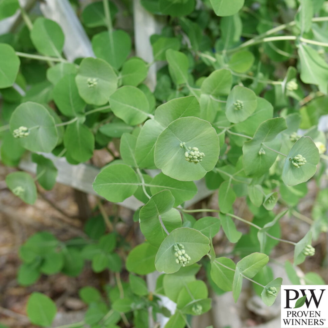 Read moreNative cultivar*. Kintzley’s Ghost® honeysuckle hasn’t always been a Proven Winners ColorChoice Shrub. But, we grew it, got to know it, and had to add it! This wild-looking plant is actually native to North America. Each season, it begins like any other honeysuckle, with typical dusty green leaves. As the season progresses, flower buds pop out like saucers. These rounded bracts look a lot like eucalyptus, but the flowers at the center feed native pollinators like hummingbirds! They turn into red berries in the fall, but won’t become a nuisance like other honeysuckles. Due to its size and interesting seasonal changes, it makes an incredible specimen.