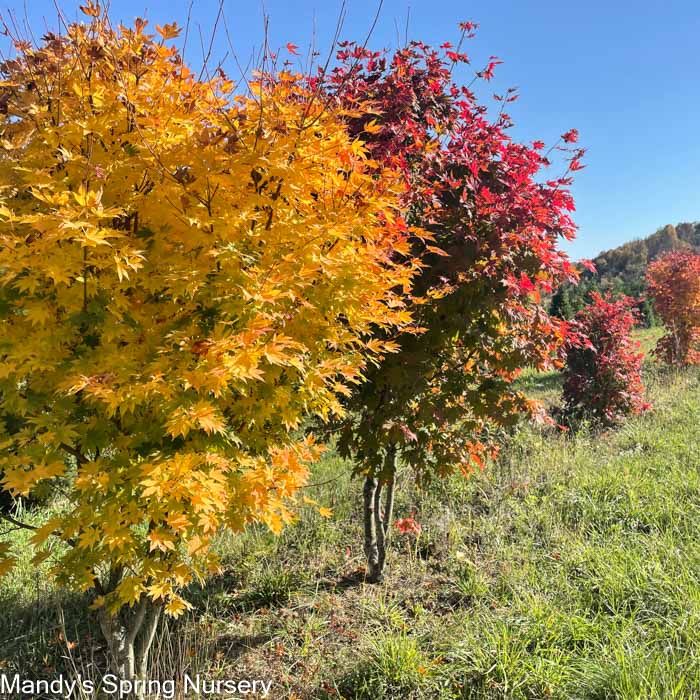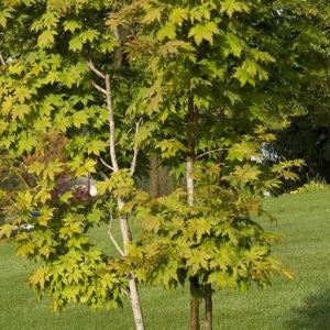 Read moreA showy accent tree with palmate foliage. Emerging red, then turning forest green in the summer, the leaves become brilliant shades of red, yellow, and orange in the autumn. In the spring, clusters of creamy white flowers with purple bracts appear prior to leaf emergence. Prefers cool conditions and won't mind partial shade. Similar in appearance to Japanese Maples (A. palmatum), these trees are an excellent substitute for those in Northern climates where the latter are not hardy.