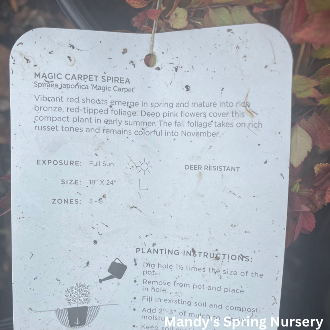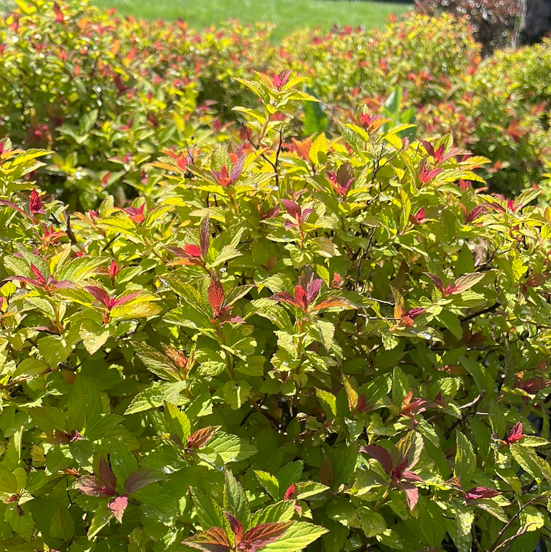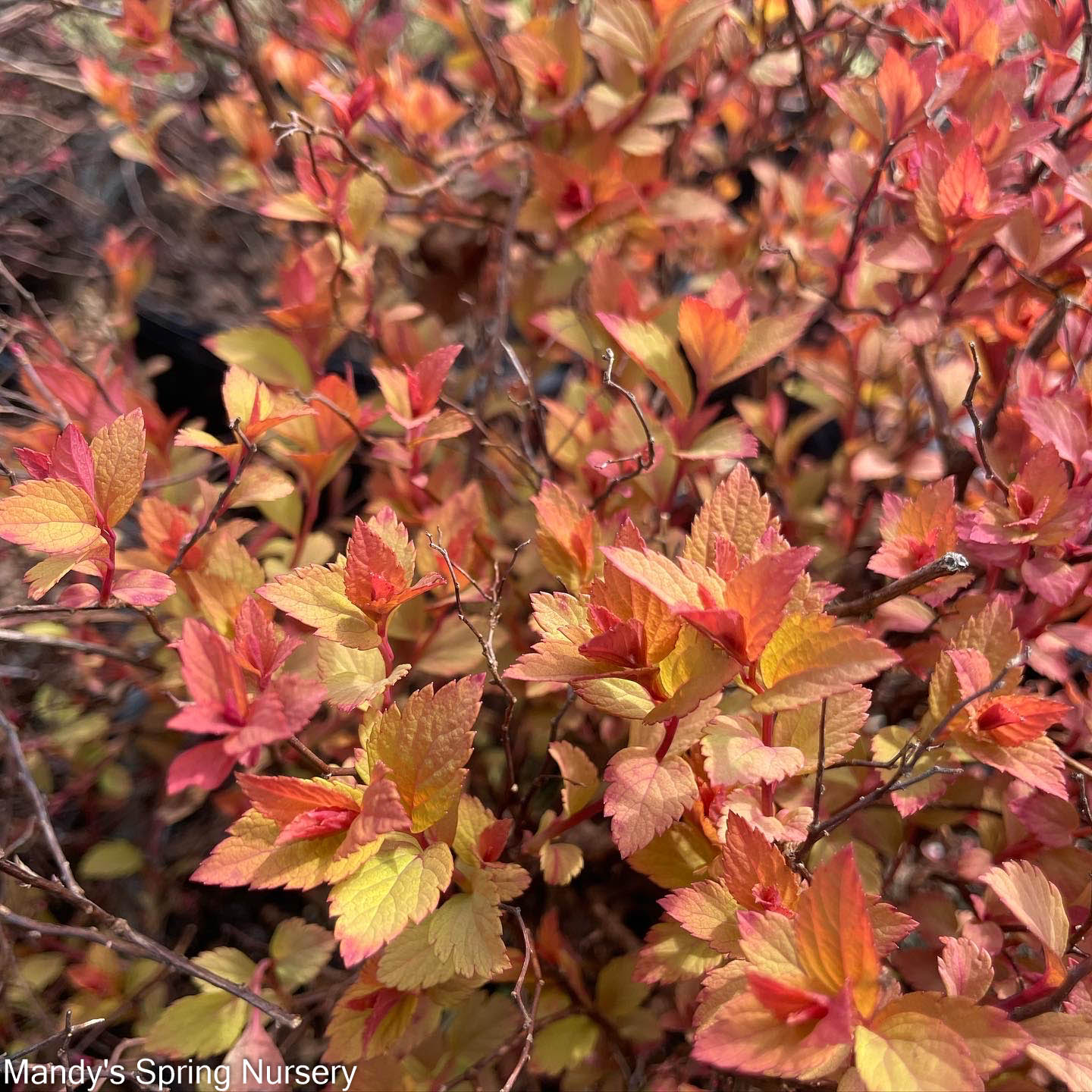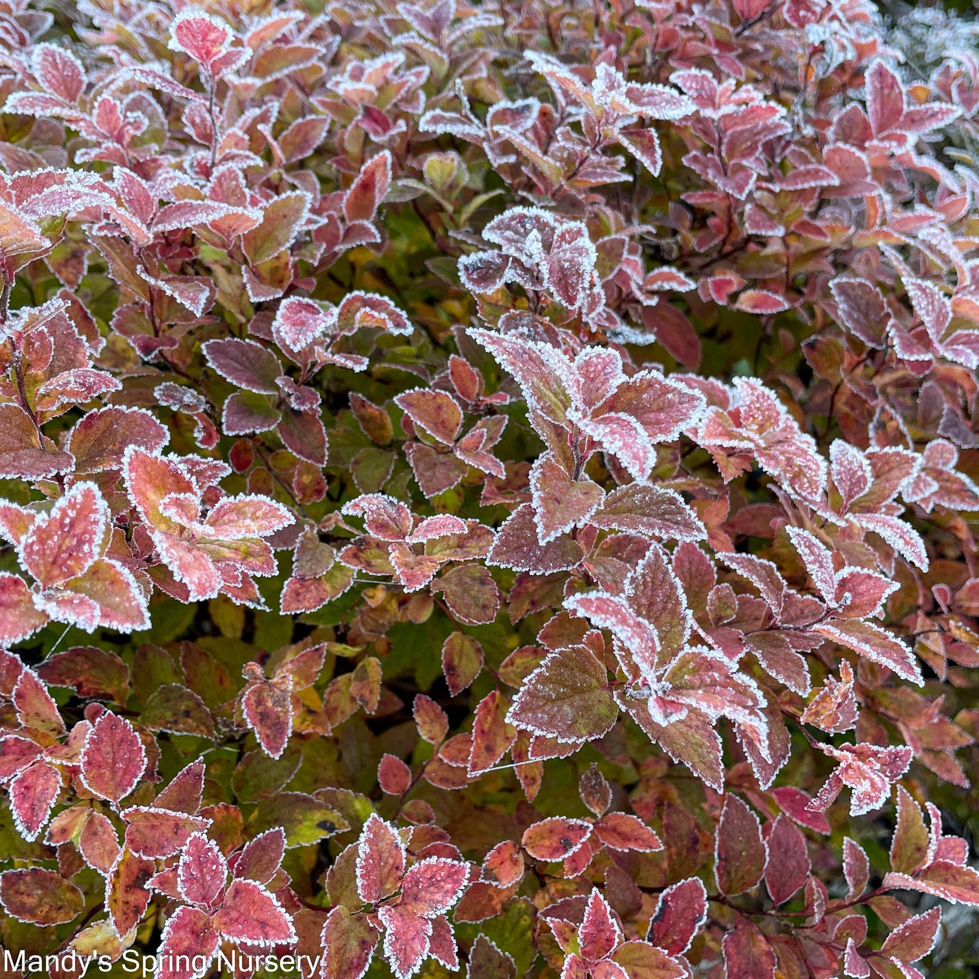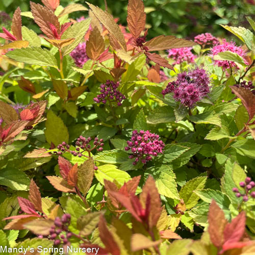 Read moreA neat, compact, mounded shrub with vibrant red new leaves. Clusters of small pink flowers contrast with bright gold mature foliage that turns rich russet red in fall. This extraordinary combination of colors will brighten and enhance any landscape. Deciduous. 2000 Michigan Grower's Choice Award Winner.