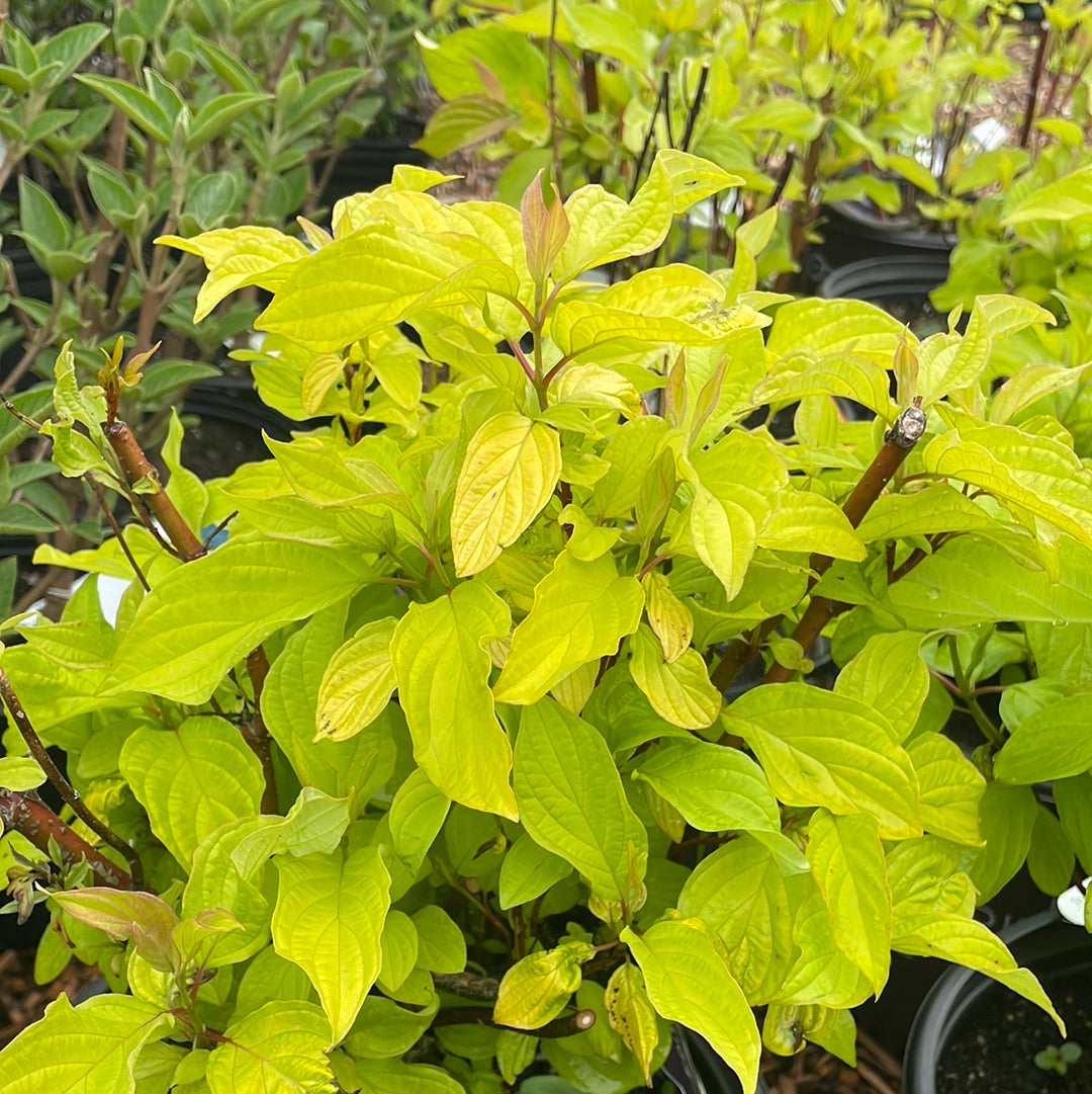 This new Tatarian dogwood from Bylands Nursery in British Columbia has attractive chartreuse foliage and is a compact selection growing 4-5’ tall. It has good sun and heat tolerance, retaining bright leaf color throughout summer.