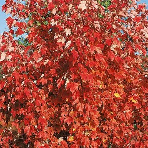 This terrific red maple is most impressive for its intense crimson red fall color, even under less than perfect circumstances. The color lasts much longer than many other red maples. The wings of the samara display an attractive reddish tinge as well. Own root.