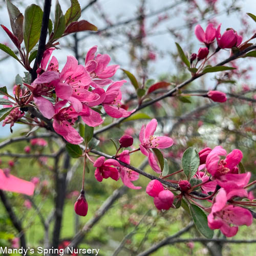 Read moreThis disease resistant cross by Dr. Dan Dayton, University of Illinois, has especially good foliage retention during summer. It blooms later than most crabs. The bark is a glossy dark red with numerous prominent lenticels, and the fruit does not drop. 1996 Iowa Tree of the Year.