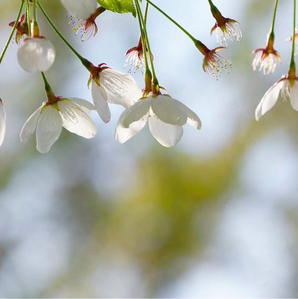 A stunning Lake County Nursery 'ZAM' introduction, this small, strongly weeping tree creates a breathtaking fountain of snow-white blooms in spring. Its graceful cascading branches are adorned with single white flowers, making it a striking focal point in any landscape. The dark green foliage transitions to rich golden and orange hues in fall, adding seasonal interest. While it produces small black fruit, it is sparse and does not detract from its ornamental appeal. This elegant cultivar is grafted on a 3' or 5' standard, enhancing its dramatic weeping form.
