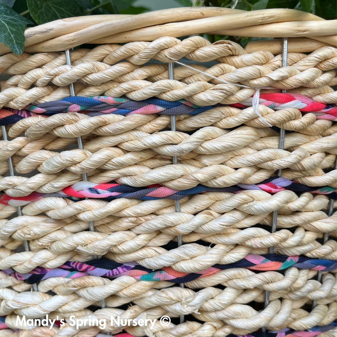 14" Natural Hanging Basket Eco-Friendly & Sustainable. Made from reclaimed garment industry fabric and jute. .