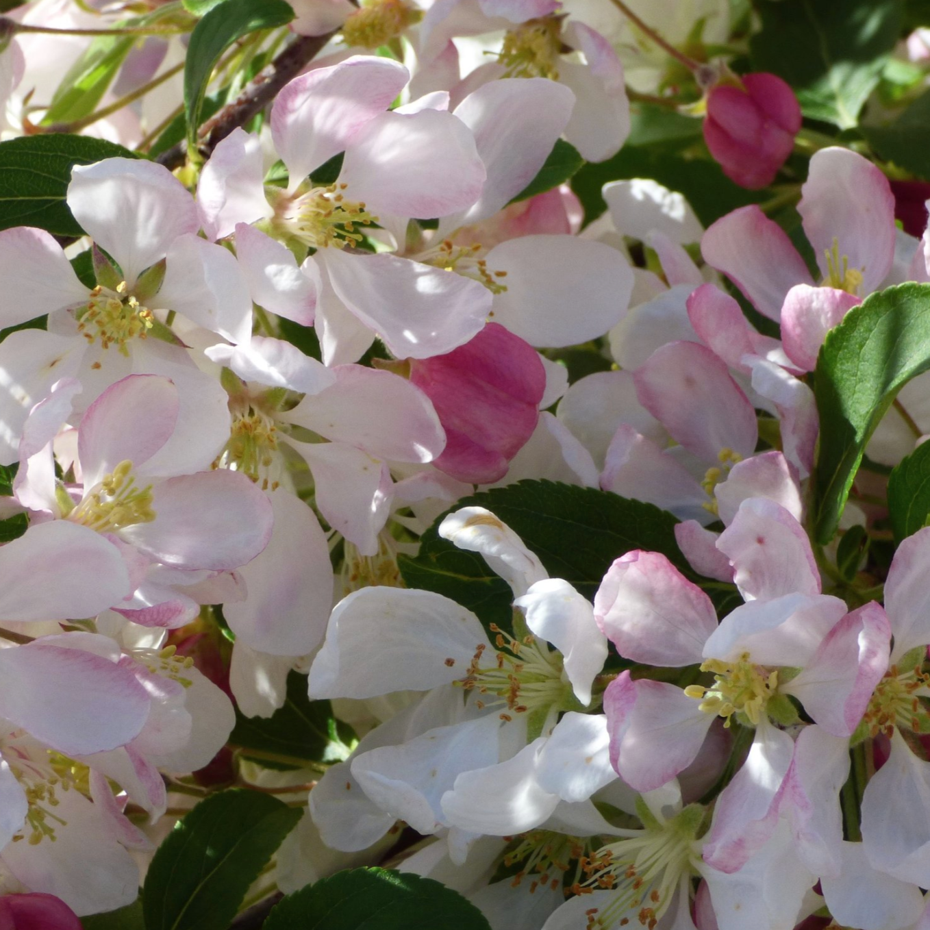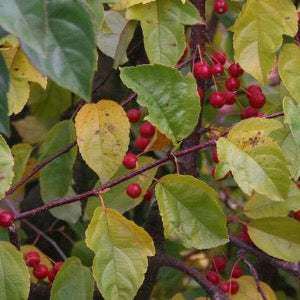 Read moreThis dependable weeping variety was introduced by the Brooklyn Botanical Garden and makes an interesting, graceful specimen plant. Deep pink buds open to profuse large single white flowers. Birds love the persistant oblong 1/2" red fruit. The foliage is glossy vibrant green and disease-resistant.