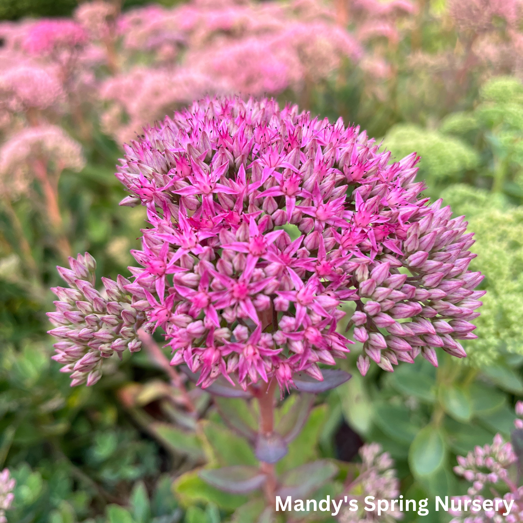 Read moreThis English variety is distinguished from ‘Autumn Joy’ by its compact habit and large clusters of brilliant magenta pink flowers held on reddish stems from late summer into fall. Compared to the more muted pink colors of some older sedums, this one really packs a punch when it’s in bloom.