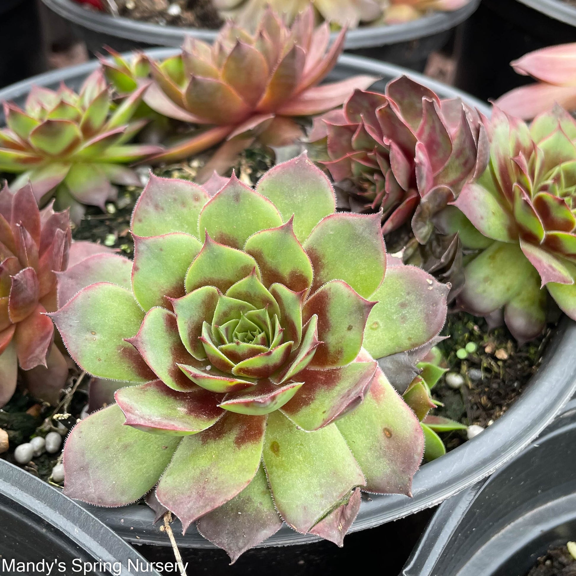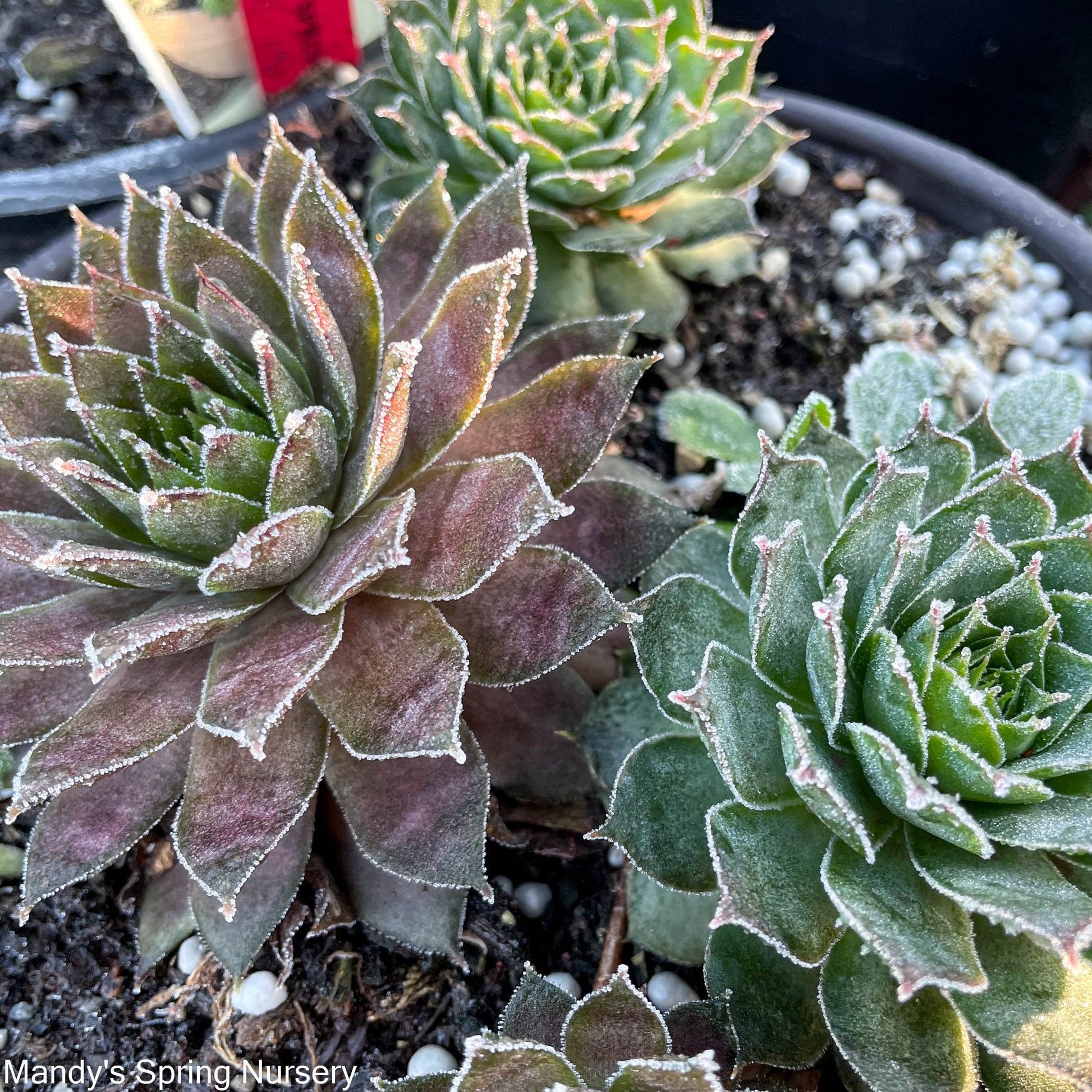 Assorted sempervivum. Drought-tolerant and cold hardy. Beautiful in rock gardens of planted in containers.