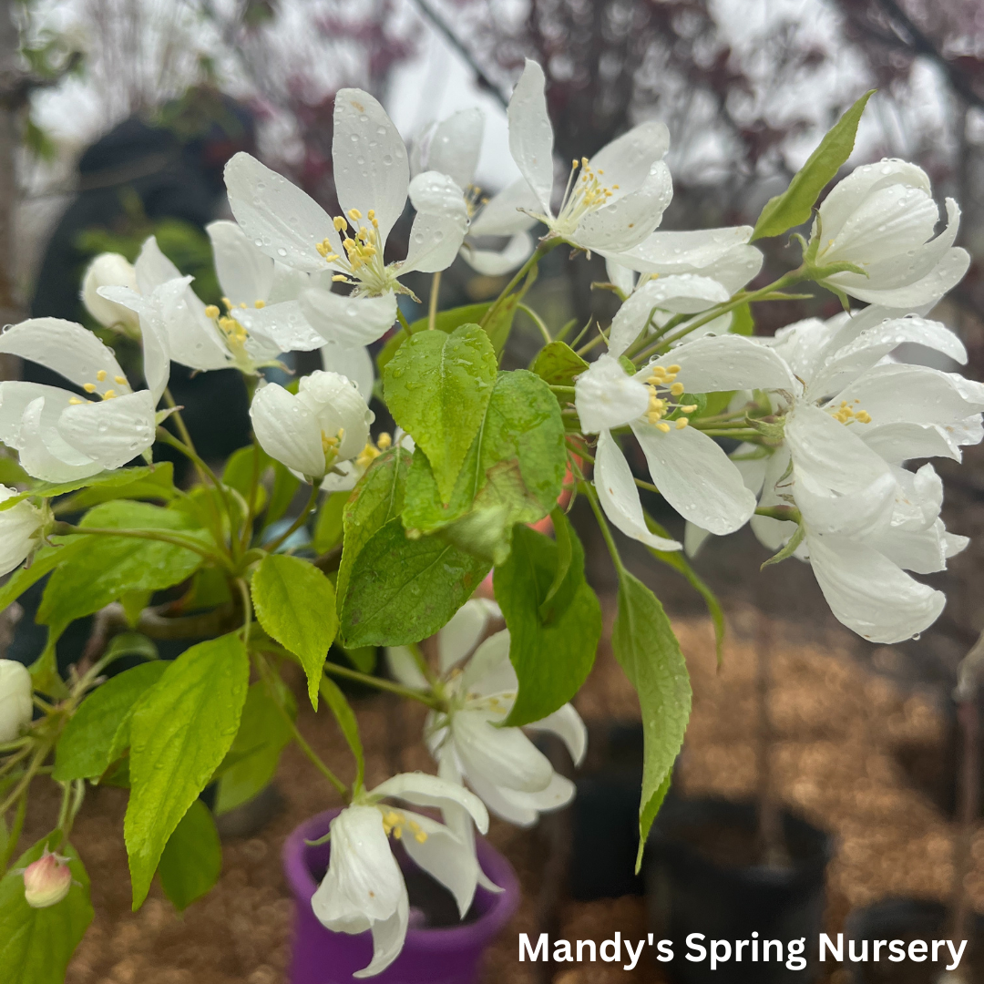 Read moreThis fruitless Canadian introduction is completely covered with pink buds that open to fragrant white flowers in spring. It has bright green, shiny foliage and good heat tolerance.