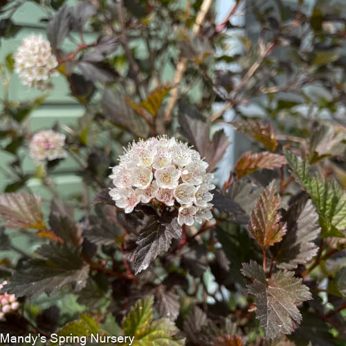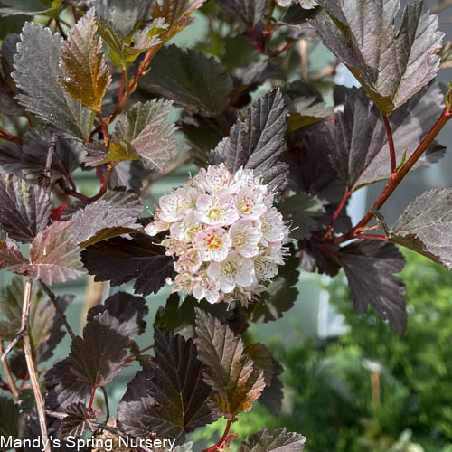 An exciting improvement to Ninebark, Summer Wine combines the fine texture and compact branching of Physocarpus 'Nana' with the dark foliage of Physocarpus Diabolo. Summer Wine is an easy way to introduce wine-colored foliage into the home garden. It is fast-growing and has few, if any, pest problems. Its graceful, arching habit makes it very appealing in the landscape. It adds beautiful color and vibrancy to your garden, especially in spring. In early June it blooms with white button-like flowers that accent the leaves nicely. Pruning and other maintenance is rarely needed. Use it as a bold accent or part of a mixed border. Summer Wine may even be cut for use in arrangements. This is a trouble-free addition to either the home or commercial landscape.