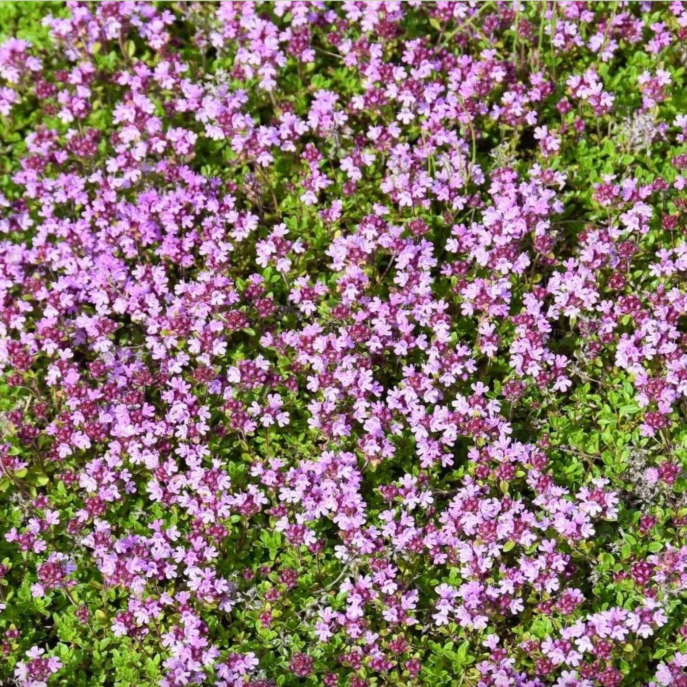 Creeping Thyme is an evergreen perennial herb that boasts stunning clusters of tiny pink, purple, or white flowers that bloom throughout the summer months.