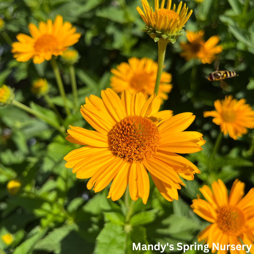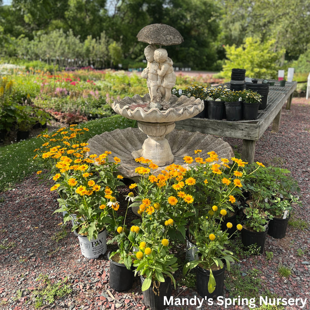 Bright golden yellow, daisy-like flowers with an orange-gold button center are produced on strong stems from mid through late summer atop the deep green foliage. It provides a brilliant beacon of color in the landscape during the hottest months of summer. Be sure to plant a few extra for your fresh bouquets!