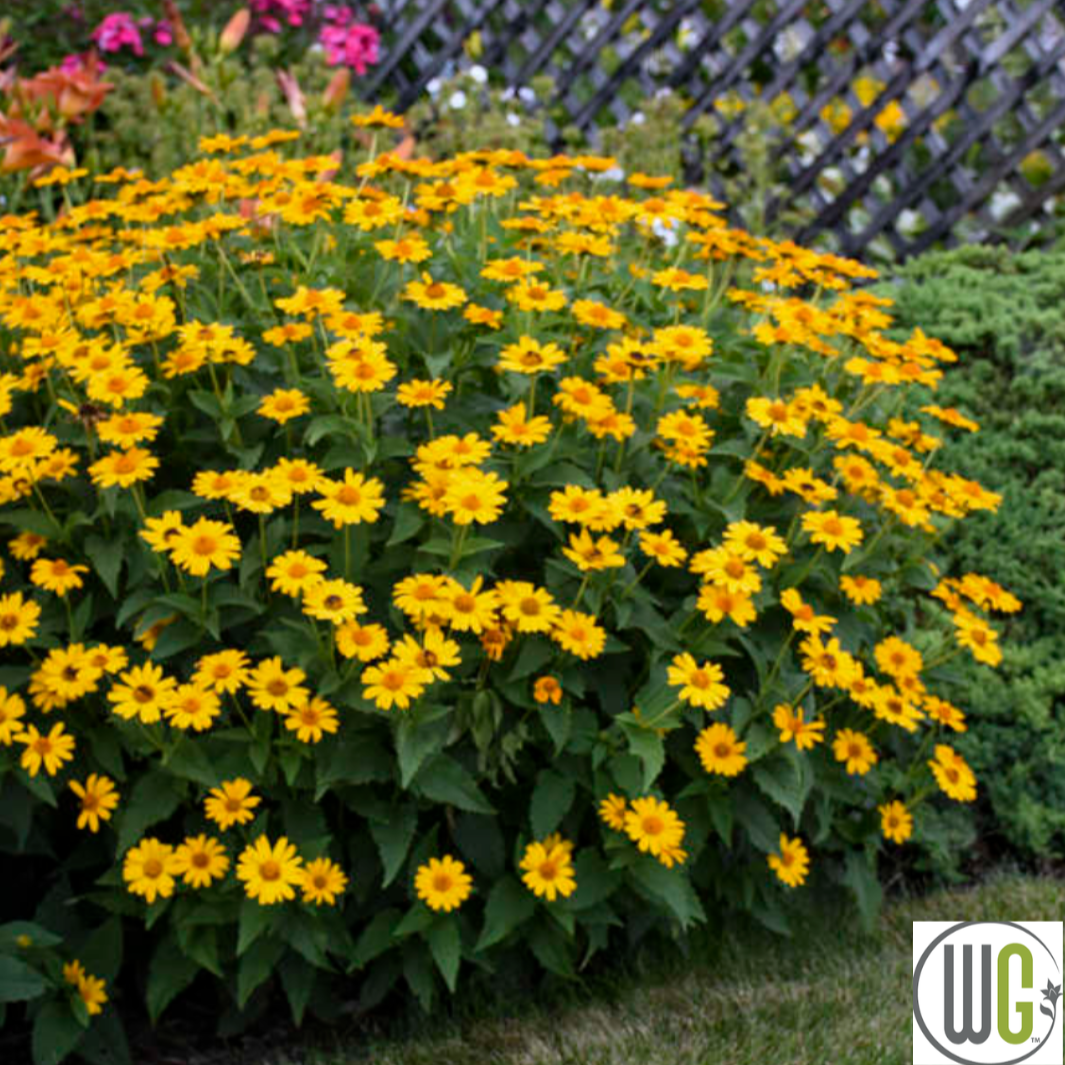 This beautiful and carefree native cultivar offers a more compact habit and good disease resistance compared to other varieties of Heliopsis.