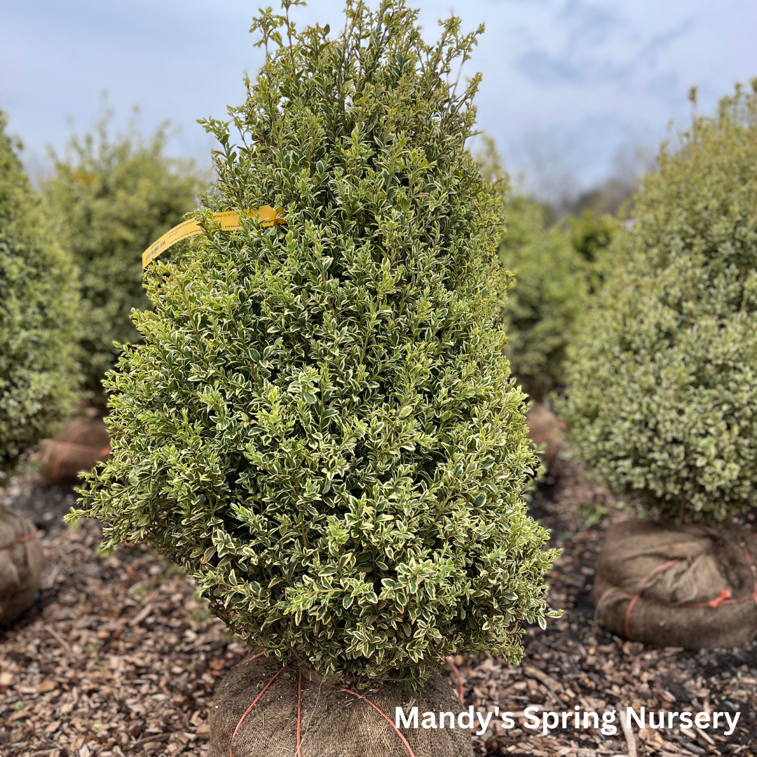 Read moreSmall dark green leaves are bordered by an irregular creamy white variegation, perfect for adding interest and color to the year-round landscape. Easily pruned into topiary shapes or a formal hedge. Works well for containers and foundation plantings. Evergreen.